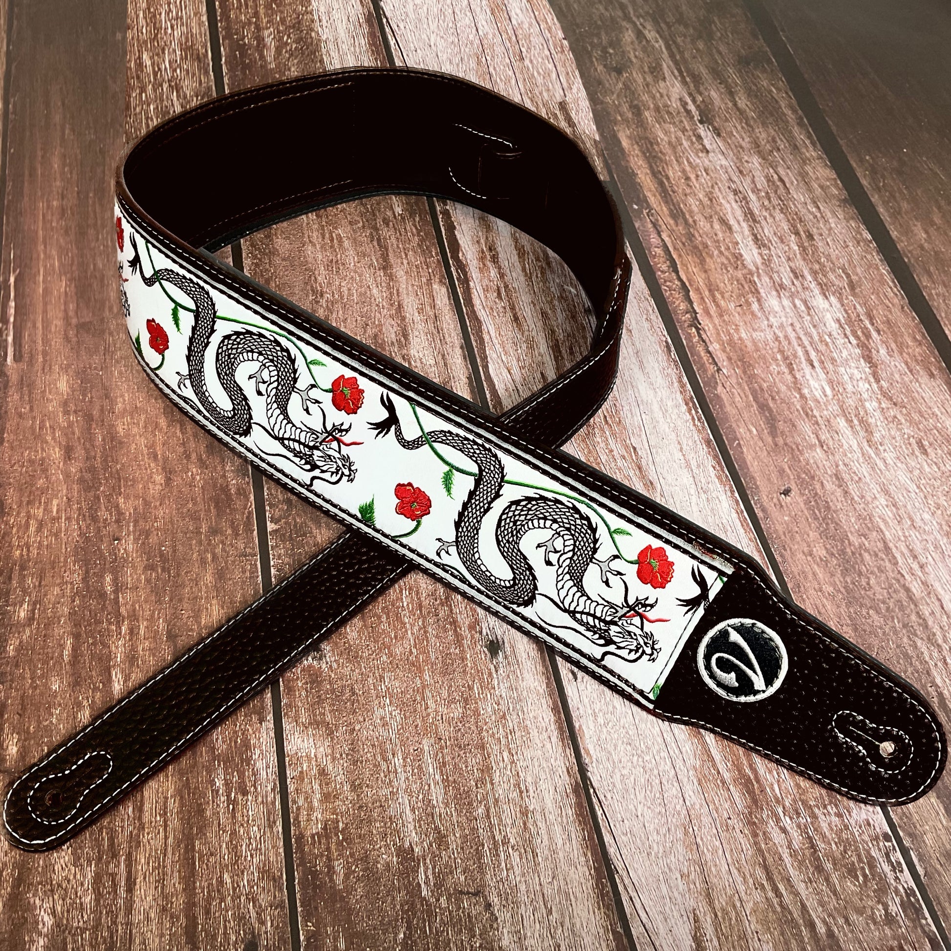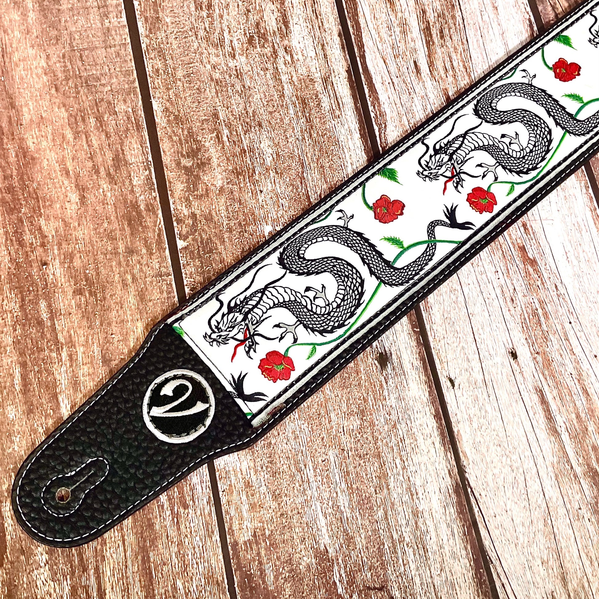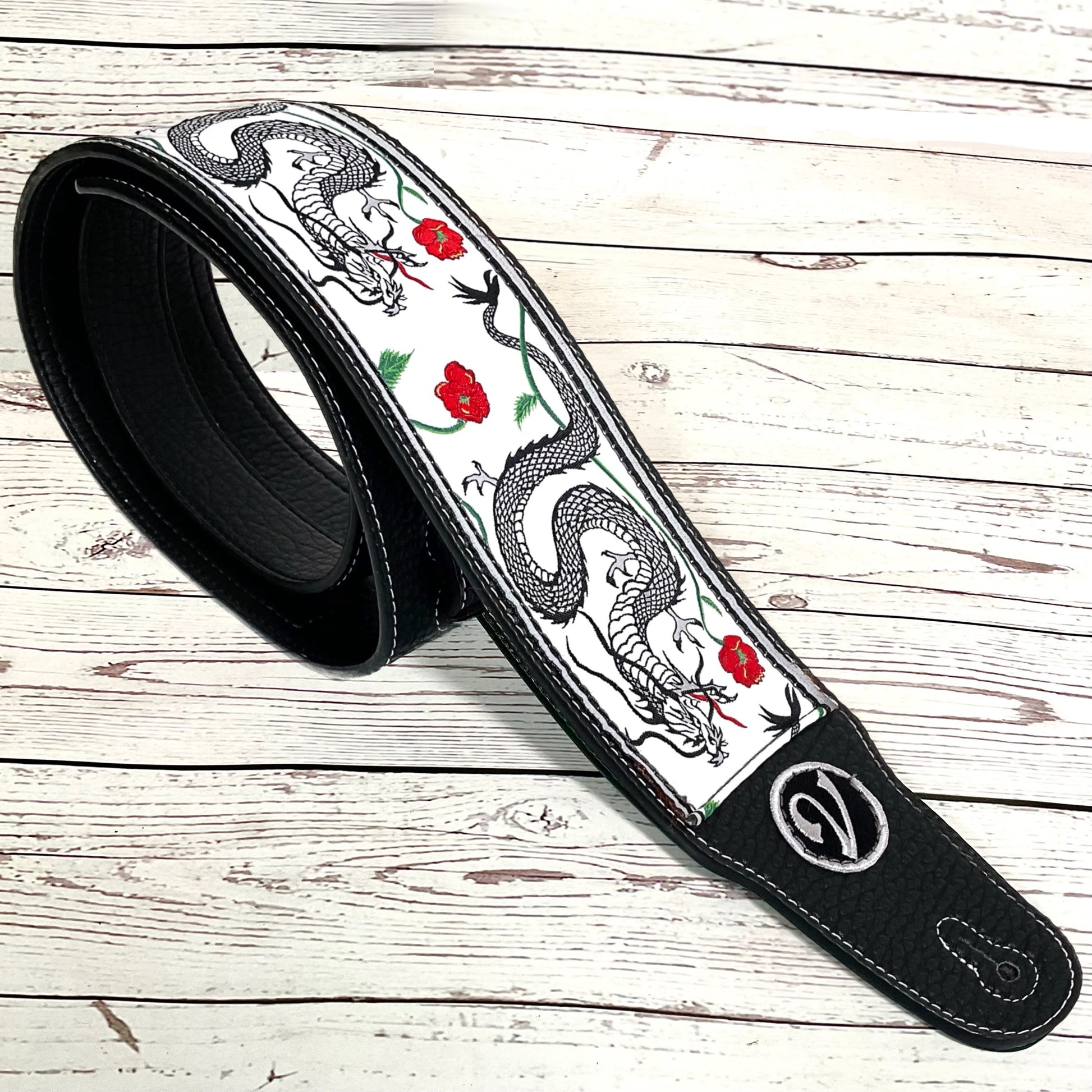 The Jimmy Page Dragon Suit Guitar Strap in White - Vtar Vegan Guitar Straps