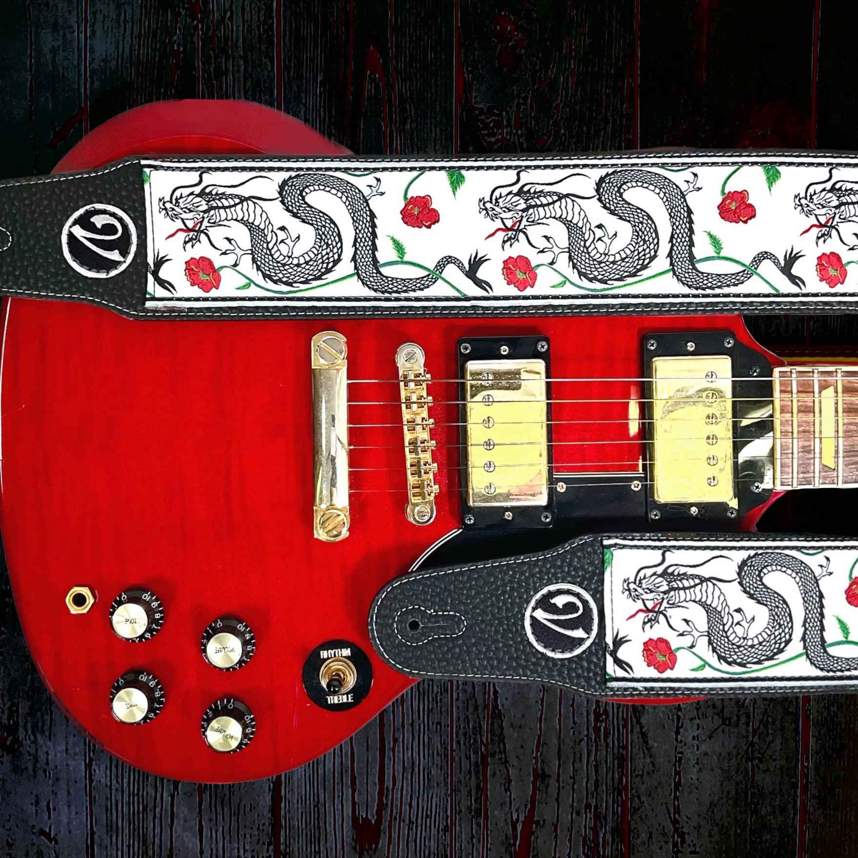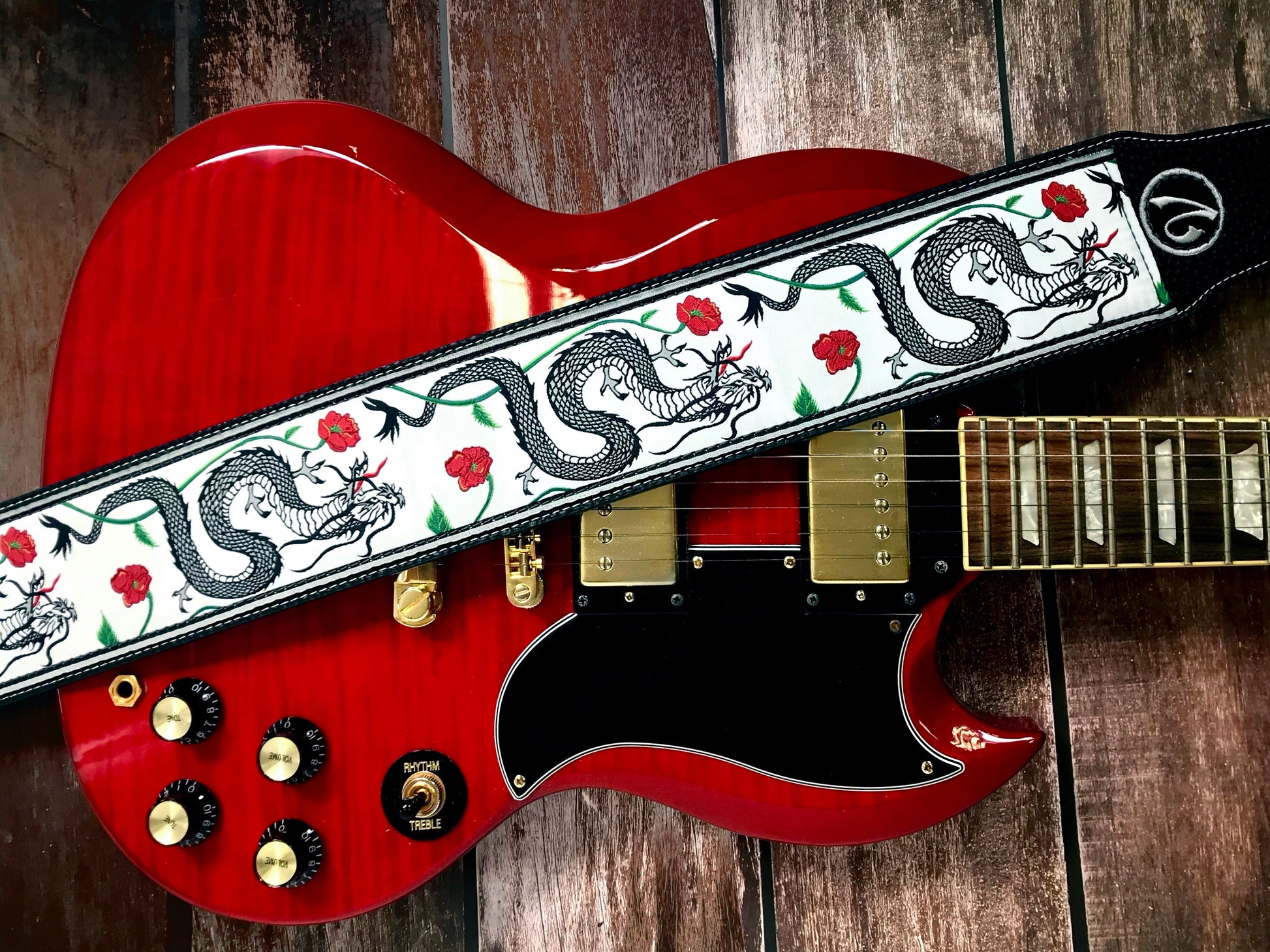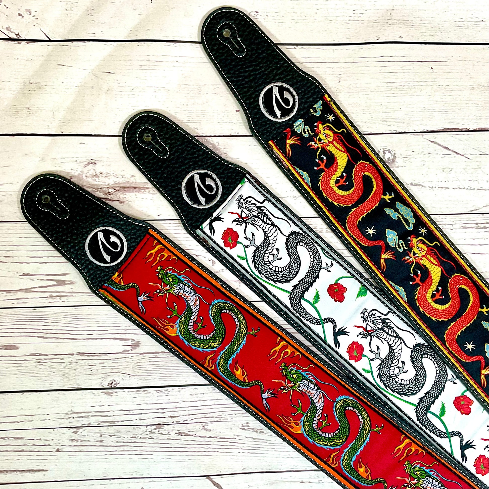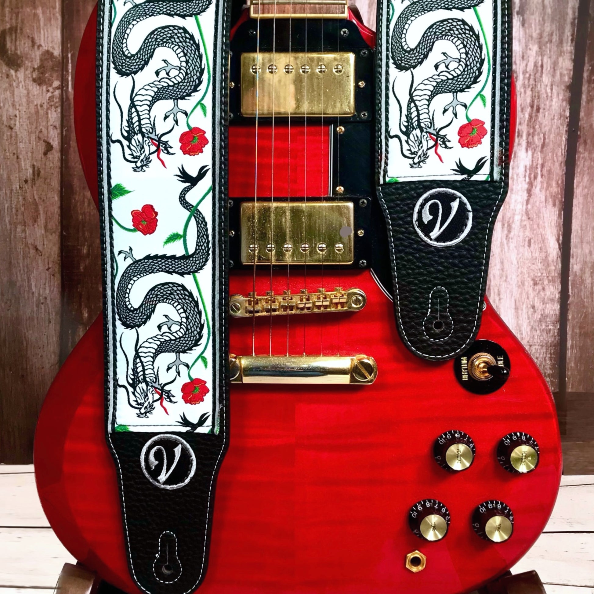 The Jimmy Page Dragon Suit Guitar Strap in White - Vtar Vegan Guitar Straps